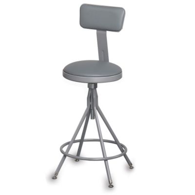 Deluxe Swivel Shop Stools have an extremely stable and functional design. Flared legs provide wide stance for extra stability. Vinyl upholstered polyfoam cushioned seat swivels 360. Threaded stem for manual seat height adjustment. Cushioned backrest adjusts 2" horizontally and vertically for maximum comfort. Tubular footrest has four spot-welds at each connection for added stability. Frame is 18-ga. 7/8" O.D. tubular steel. Non-marring floor glides. Azure gray metallic frame, gray upholstery. Meets or exceeds ANSI/BIFMA standards up to 250 lbs. capacity. Appropriate for lean manufacturing. Read More..