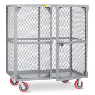 LITTLE GIANT Visible Contents Security Truck offers maximum security, as well as good ventilation and visibility of contents. Heavy-gauge reinforced deck. Mesh sides with 12-gauge steel frame. Double doors swing open 270 and include a padlock hasp for security. 48" interior height. Rolls on non-marking 6" polyurethane casters2 swivel, 2 rigid. Read More..