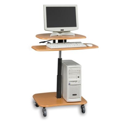 LUXOR Compact Mobile Computer Workstations accommodate the changing needs from person-to-person or shift-to-shift. Hydraulic adjustment raises the 24"Wx29"D worksurface from 2936"H. Lower shelf holds either the CPU or a printer. Also includes a 27"Wx12"D pull-out keyboard shelf. Durable laminate surfaces are supported by a heavy steel frame. 25 1/431 1/2"H keyboard shelf Read More..