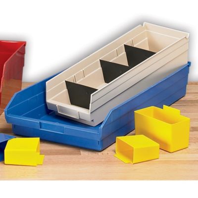 Dividers for 6"H Shelf Bins. Fits 4 1/8"W bins. Sold in quantities of 50 only. Color: black. Read More..