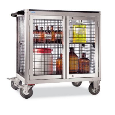 EUROKRAFT Aluminum Security Truck features corrosion-resistant construction. Secure wire mesh doors with full-length handles have locks at top and bottom. Mesh panels are encased in foam to prevent vibration. 5/8" thick black wood base. Bolted on push handle and dual cylinder lock. Rolls on 6 1/4" non-marking rubber casters, 2 swivel and 2 rigid. Read More..