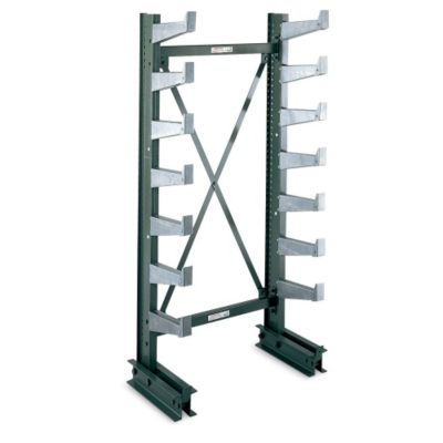 All-purpose JARKE Quiktree Cantilever Racks store uniformly distributed loads up to 500 lbs. on each arm. 14-gauge galvanized steel arms adjust on 1 1/2" centers and tilt up at approximately 5. Arm end cap can be tipped up for round stock. Arm capacity: up to 500 lbs. To form storage rows, begin with starter column, join any number of add-ons. Read More..