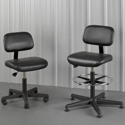 BEVCO Industrial Seating has an unconditional 12-year warranty (lifetime on cylinder). Vinyl upholstery. Fully adjustable back3" vertical, 1 1/2" horizontal. Pneumatic seat height adjustment. Fire-retardant foam meets California Technical Bulletin #117. Meets or exceeds ANSI/BIFMA standards, up to 250 lbs. capacity. Read More..