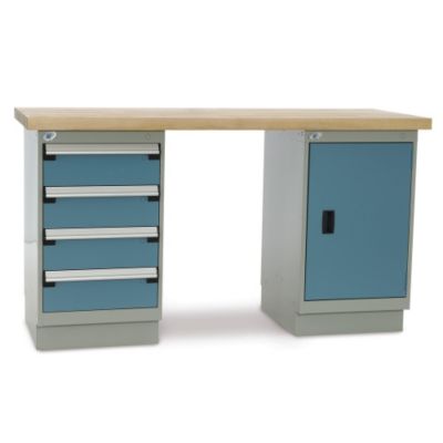 Rousseau Workbench With One Cabinet And One 4-Drawer Pedestal - 6" Front Drawer Height - 60X30" Maple Top