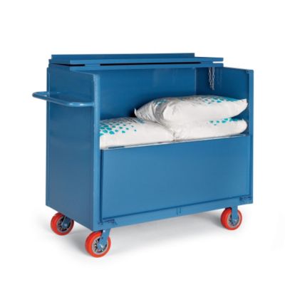 Solid 14-gauge steel walls on the RELIUS ELITE Premium Security Box Trucks add security and increase durability. User-friendly features include side drop gate and double-hinged cover that folds down and back. Welded push handle. Padlock hasp (lock not included). Interior height: 36". Rolls on 6" polyurethane casters: 2 swivel, 2 rigid. Color: blue. Read More..