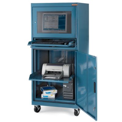 RELIUS SOLUTIONS Mobile Computer Cabinets for Extreme Environments feature air-tight seals around all doors and an air-intake fan that filters out dirt and dust to prevent it from entering system. 25 1/2"Wx30"Dx21 1/2"H monitor cabinet. 44 1/2" work height. 24 1/2"Wx25 1/2"D slide-out keyboard tray. 25 1/2"Wx30"Dx35"H lower cabinet with adjustable pull-out printer shelf. Also includes: 6-outlet strip with surge suppressor and master on/off switch. 5" casters(4) swivel casters, (2) with brakes. Powder coat finish. Read More..