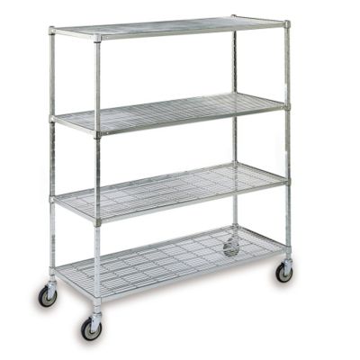 Steel wire shelves and steel posts feature a clear non-toxic lacquer coating over a durable zinc-plated finish. Shelves adjust in 2" increments. 5" casters. NSF listed. Read More..