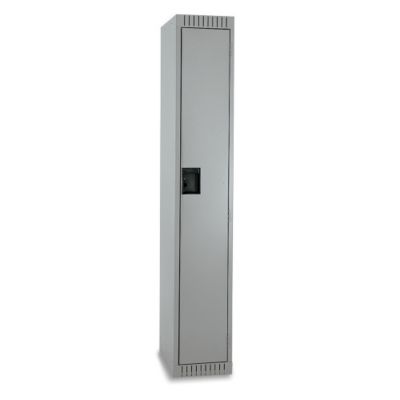 Assembled 1-Tier Lockers arrive set up and ready to load. 20-gauge steel door; 16-gauge steel door frame; 26-gauge steel body. 5-knuckle hinge. Includes 3 coat hooks and top shelf. Recessed handle with single-point lock. Color: gray. Assembled lockers are returnable. Call for authorization. Read More..